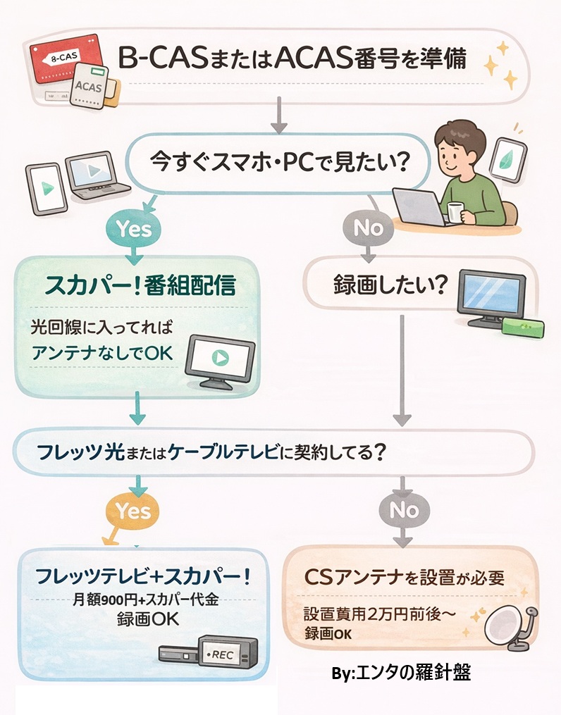 次にスマホ・PCで見たいのか?テレビなどで録画をしてみたいのかを決めます。