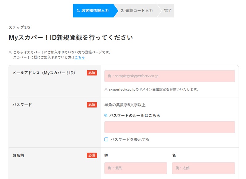 Myスカパー!ID登録が完了しました。の表示がでたらもう少しです!