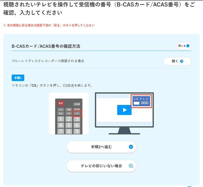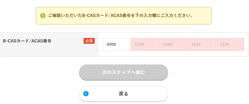 ※B-CAS番号がわかる方は入力して次のステップへ進む。