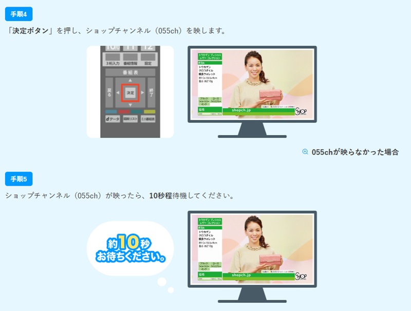 「決定ボタン」を押してショップチャンネル(055ch)を映します。