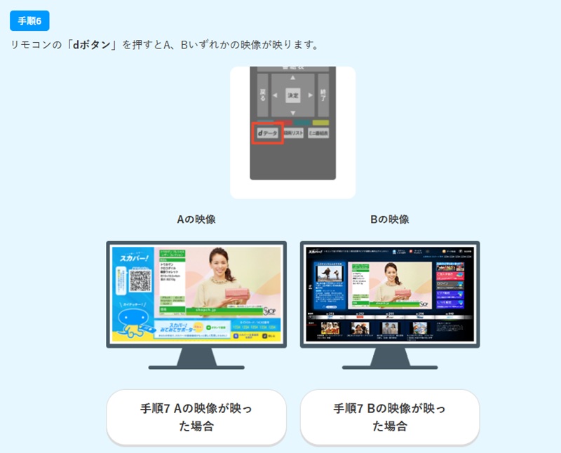 リモコン「dボタン」を押すと上記のAまたはBの映像が表示されます。