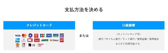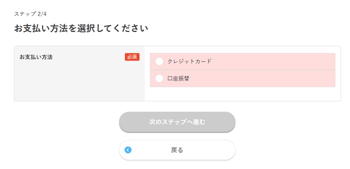 「クレジットカード」か「口座振替」を選択して次のステップへ進む