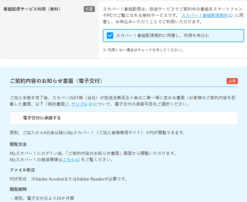 「スカパー!番組配信規約に同意」に必ずチェックしてください。